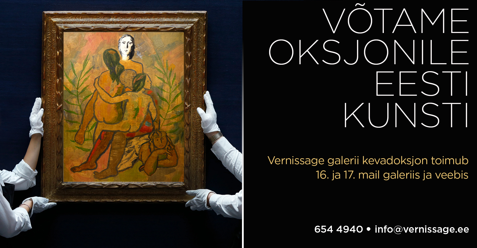 Avalehtadmin2026-02-03T12:44:47+00:00 VIIMATI LISATUDteosed Lisa korvi Guašš, Maal Lembit Saarts. Lõuna-Eesti maastik. 1969.a. Guašš.. Vm 37 x 42.5 cm. 1,800.00€ Lisa korvi Maal, Õli Rein Tammik. Paris. Õli. Lõuend. 33 x 46 cm. 1,800.00€ Lisa korvi Akrüül, Maal, Õli Alvar Reisner. Hiiumaa, 2024. Akrüül, Õli. Lõuend. 60 x 80 cm. 1,750.00€ Lisa korvi Graafika Raivo Korstnik. Akt I (Akt luigega). 1987.a. Graafika. Lito. Vm 32.4 x 39 cm. 1,550.00€ Lisa korvi Maal, Õli Boris Ninemäe. Lådor med dagens fängst / Kastid tänase saagiga. Õli. Lõuend. 22,5 x 27 cm. 1,150.00€ Lisa korvi Graafika Silvi Liiva. Kesköö. Graafika. Ofort. Plm 14.7 x 14.4 cm. 1994.a. 450.00€ Lisa korvi Maal, Õli Joann Voldemar Saarniit. Talvemaastik. Õli. Masoniit. 50.5 x 61 cm. 2,500.00€ Lisa korvi Guašš, Tempera Andrei Jegorov. Laadalt. Guašš. Tempera. . Vm 33,7 x 48,8 cm. 3,950.00€ Lisa korvi Maal, Õli Boris Ninemäe. För mycket snö för trädfällning / Puude langetamiseks on liiga palju lund. Õli. Lõuend. 40 x 50 cm. 1,800.00€ Lisa korvi Maal, Õli Märt Bormeister. Hommikune Silla talu ait (Linnuse küla, Muhu). 1969.a. Õli. Papp, 33 x 48 cm. 1,200.00€ Lisa korvi Graafika Herald Eelma. Pirnid. Graafika. Värviline linool. Paber. Km 38.5 x 42.9 cm. 950.00€ Lisa korvi Graafika, Maal Enn Põldroos. Uneveski. 2020.a. Digimaal. Lõuend 100 × 93 cm. 1,400.00€ Tegeleme ka kunstinäituste ja -oksjonite korraldamisegaMeie galeriis leidub teoseid läbi Eesti kunstiajaloo, alates 19. sajandi lõpust kuni tänapäevani.KUNSTITEOSEDtelli mugavalt e-poestValige välja Teile sobivad kunstiteosed ja vormistage ost meie e-poes.Maal Akvarell Graafika Joonistus Vaata kõiki kategooriaid VERNISSAGEkunstigaleriiUuenenud Vernissage kunsti ja pildiraami salong tegeleb lisaks kunstiteoste vahendamisele ka piltide ja peeglite raamimisega. Vaata edasi