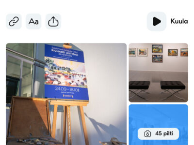 Austatud kunstisõbrad! Kuni teisipäeva, 9. septembrini on veel võimalik meie galeriis vaadata Malle Leisi 85. sünniaastapäevale pühendatud väga erilist näitust "Mälestusi reisidelt". Kui te pole veel jõudnud, soovitame. Mõtted on meil aga juba järgmise näituse juures, sest soovime tähistada järgmisena Richard Uutmaa 120. sünniaastapäeva ja palume seekord oma auväärt publiku abi. Kui...