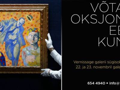 Austatud kunstisõbrad! Sügis asub tasapisi talvele teed andma, aga eeloleval nädalalõpul toob lisaks päikesele novembrisse värvid korraks tagasi ka meie järjekordne sügisoksjon. Me oleme valmis, oksjoniteoste näitus on publikule avatud, tutvustavad videod on kodulehel vaatamiseks valmis, kataloogid on trükitud. Viimaseks kirsiks sellele tordile veel enne oksjonit on meil eeloleval neljapäeval, 20. novembril kell...