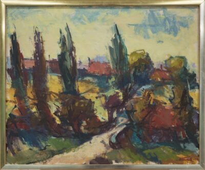 Ado Vabbe "Maastik punase majaga"(Sügisoksjon 2023) Alghind 29 000 € Haamrihind 70 000 €