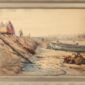 34. Aleksander Pilar. Kihnu sadamas. 1951. Akvarell. Paber, kleebitud papile. Lm 32.5 x 44 cm. Alghind: 1100 € Haamrihind: 1100 €