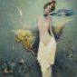 Anna Kõuhkna. Valgust pimedusse. („Taevaköiel“). 2025. Õli, lõuend. 60 x 80 cm. Alghind: 1800 € Haamrihind: 2300 €