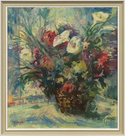 Aleksander Vardi. Lillekorv. 1960. aastate lõpp –1970. aastate algupool. Õli, papp. 55 x 49,8 cm. Alghind: 8000 €