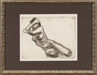 Eric Pehap. Nõjatuv akt. 1939. Graafika. Akvatinta, paber. Plm 30.6 x 39.7 cm. Alghind: 1000 €