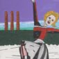 Malle Leis. Läheb taeva. 2001. Õli, valge lõuend. 100,2 x 150,2 cm. Alghind: 12000 €