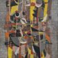 Lembit Saarts. Naine seapõrsaga. 1970. aastad. Segatehnika (õli, guašš, tempera), papp. 45 x 40 cm. Alghind: 1300 € Haamrihind: 2500 €