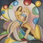 Arno Vihalemm (1911 – 1990), Natüürmort kaktusega,1939/1976 graafika, värviline linoollõige, paber