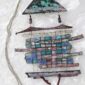 Urve Küttner. Naised mere ääres. 2004. Ehteinstallatsioon. Paul Delvaux’ maali fragmendi reproduktsioon, hõbe, pärlid, akupunktuuri nõelad.