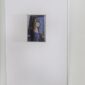 Urve Küttner. Sissepääs linna. 2004. Paul Delvaux’ maali fragmendi reproduktsioon, Jean Paul Gaultier’ parfüümipudelile modelleeritud hõbemaskiga pea, joonistus, paljundus, värvipliiats.