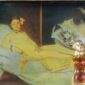 Urve Küttner. Olümpia. 2010. Reprodetail E. Manet’ maalist “Olümpia” (1863). J. Paul Gaultier’ parfüümipudelile modelleeritud hõbemaskis pea, joonistus, paljundus, värvipliiats.