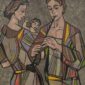 Lembit Saarts. Naine seapõrsaga. 1970. aastad. Segatehnika (õli, guašš, tempera), papp. 45 x 40 cm. Alghind: 1300 € Haamrihind: 2500 €